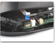 Deja el ratón en la mesa y levanta la mitad superior para que puedas alcanzar el cable de interconexión desde el lado derecho.